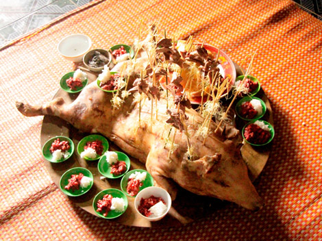 | Một trong những mâm lễ dâng lên Giàng trong Tết A Za. |